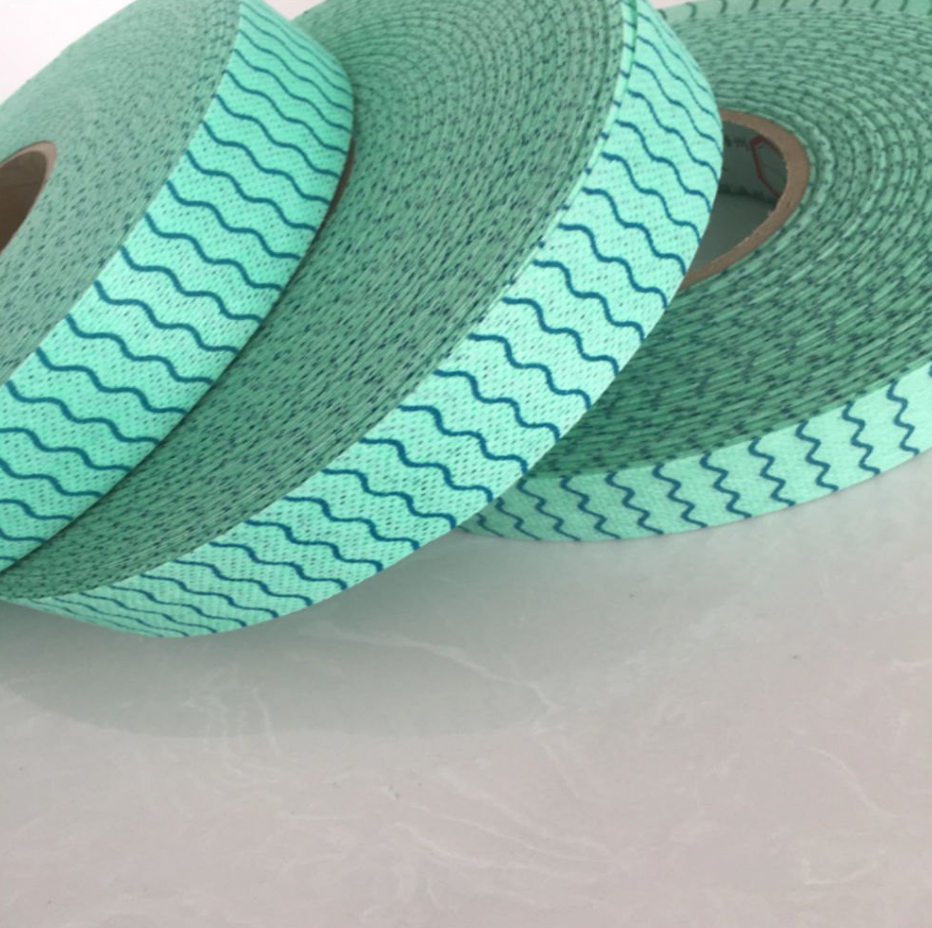 ADL roll green chip (additional distribution level) STRIP 50 GSM – Premium ADL (Additional Distribution Layer) roll with green chip strip, designed to enhance fluid distribution and absorption efficiency. Made from high-quality nonwoven material with a basis weight of 50 GSM, ensuring softness, uniformity, and excellent permeability.